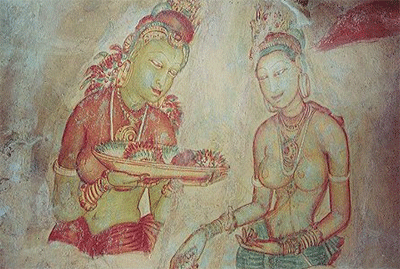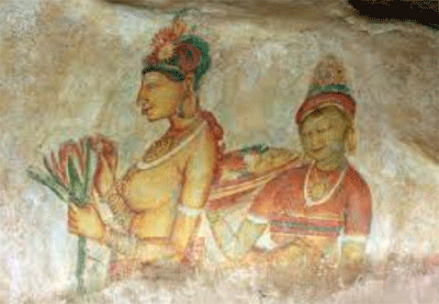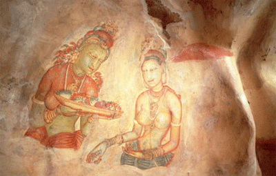 On the walls of the rock you can see the rock paintings of the ancient Sri Lankans still in good shape. They have used the paints developped by themselves which could last for centuries and centuries.